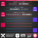 Unsere Landesliga-Teams müssen diese Woche Auswärtsreisen nach Bleiburg bzw. Klagenfurt antreten, unsere Unterliga-Damen bestreiten ihr zweites Heimspiel der Saison! Auf unsere Herren 1 wartet eine harte Nuss, gegen die bisher