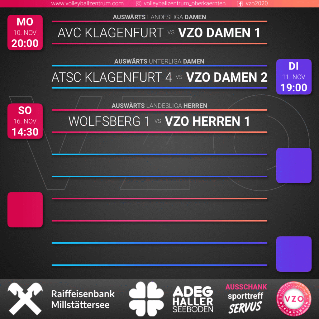 Mittlerweile sind alle unsere Teams in den Ligabetrieb gestartet – diese Woche geht das Kräftemessen mit den Wörtherseelöwen in die nächste Runde, außerdem steht wieder ein Heimspieldoppel am Volleyball-Samstag an!