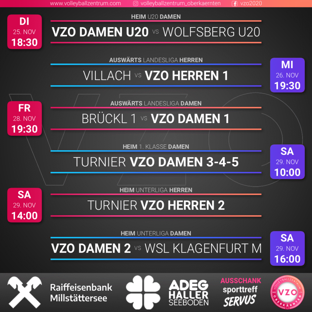 Mittlerweile sind alle unsere Teams in den Ligabetrieb gestartet – diese Woche geht das Kräftemessen mit den Wörtherseelöwen in die nächste Runde, außerdem steht wieder ein Heimspieldoppel am Volleyball-Samstag an!