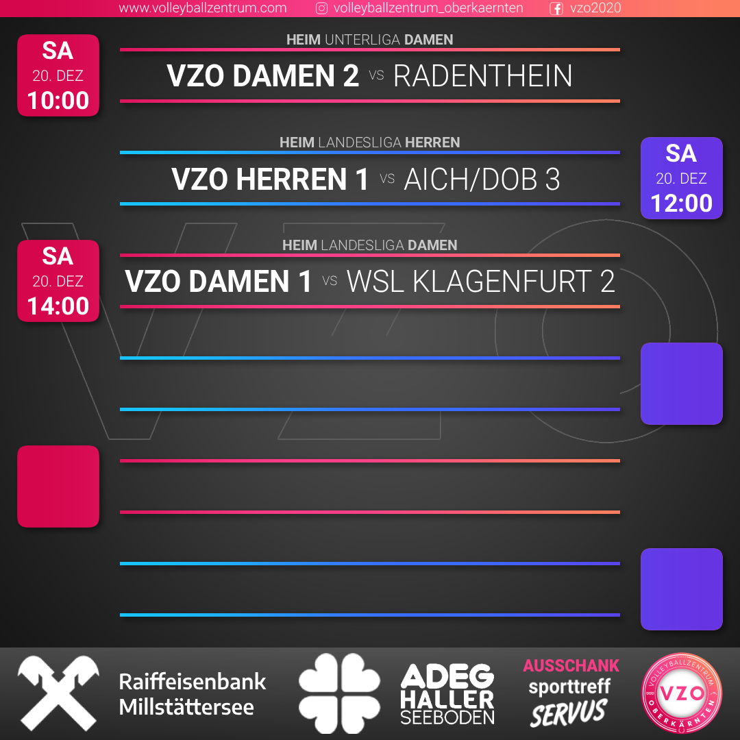 Der Abschluss des Heimspiel-Triples gebührt unseren Damen 1: Gegen die Wörtherseelöwinnen war man im Hinspiel auswärts in der Landeshauptstadt bereits knapp an einem Satzgewinn dran, am Ende fehlte jedoch die nötige Abgeklärtheit – mit einer vollen Tribüne und den VZO-Fans im Rücken soll diesmal der Sieg gelingen!